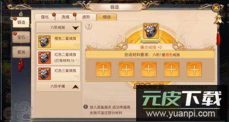 2)低阶戒指手镯可通过进阶提升品阶,通过熔合提升星级;