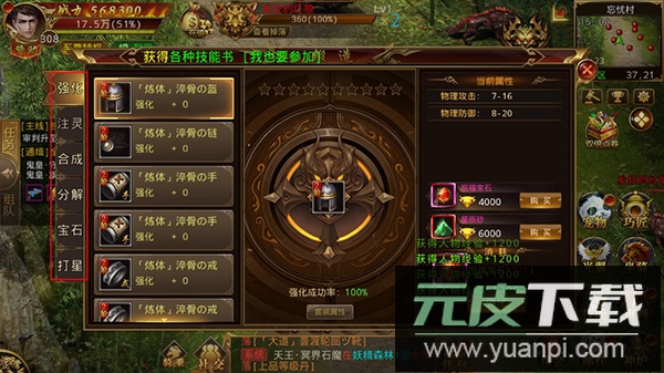 锻造系统包含强化、注灵、合成、分解、宝石与打星六大功能;这些模块都能对装备进行培养提升,附加各类额外属性。