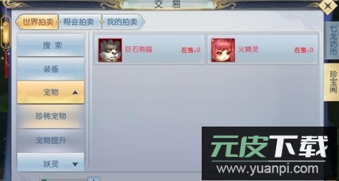 世界拍卖频道会推出稀有宠物如巨石熊猫、火精灵,以及珍贵妖灵如跳跳大王、羽人女王等;