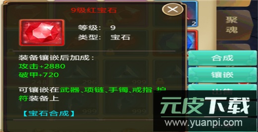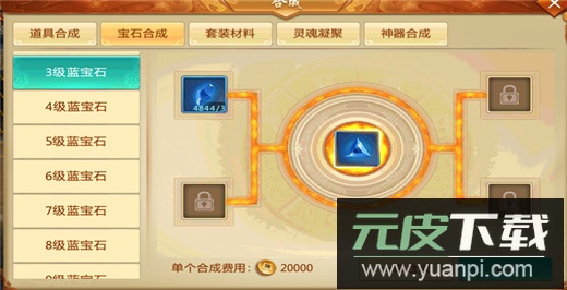 宝石合成需要消耗低一级的宝石与一定数量的铜钱。例如合成一颗二级宝石,需要三颗一级宝石并支付一万铜钱;合成规则依此类推,直至合成最高级的九级宝石,需要三颗八级宝石与八万铜钱的合成费用。