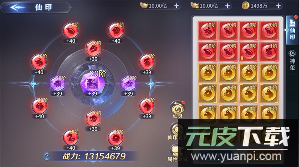 使用神玺升级丹可提高神玺等级,从而增强生命、攻击与防御属性。
