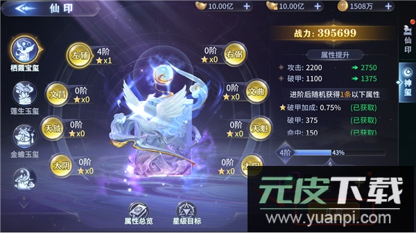 消耗神玺进阶丹可提升神玺星级,获得更显著的属性成长。