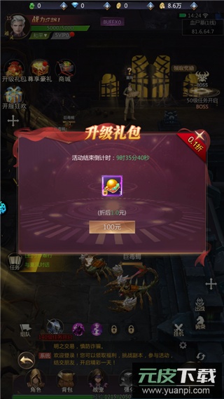 2、角色等级提高后,VIP等级也会相应提升;记得领取免费的VIP礼包,也可选择性价比极高的0.1折礼包进行充值。