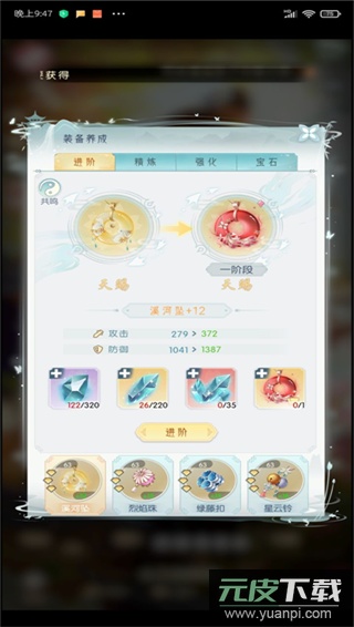 装备品质由低至高可分为普通、非凡、稀世、天赐等层级,每阶段进阶均需对应的材料与图纸。例如普通升至非凡需消耗星辰砂砾与非凡图纸,非凡至稀世需要星辰砂砾、星辰结晶及稀世图纸,稀世至天赐则需星辰砂砾、星辰结晶、星辰原石与天赐图纸,而天赐进一步升阶还需星辰结晶、星辰原石、星辰印鉴以及一阶段专属图纸。