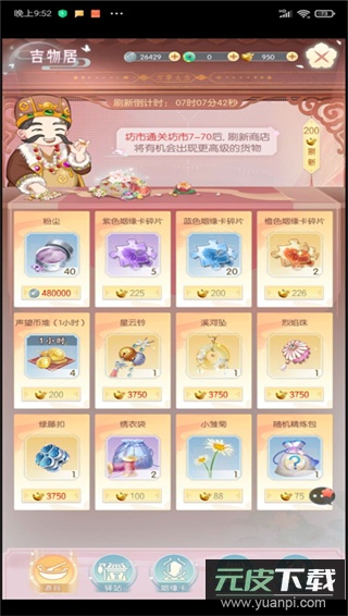 玩家可在吉物居中使用元宝直接购买各类装备,集齐成套的天赐品质装备还可激活额外的共鸣属性;吉物居中也会限量出售天赐装备碎片,为装备收集提供另一条途径。