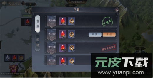 通关章节3-9后,将开启北定中原玩法。每个城池章节下设普通关卡与炼狱关卡,需依次通过普通关卡才能解锁后续挑战。完成该章节所有普通关卡后,即可挑战炼狱难度。成功通关可获得装备打造石、铜币等资源。