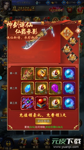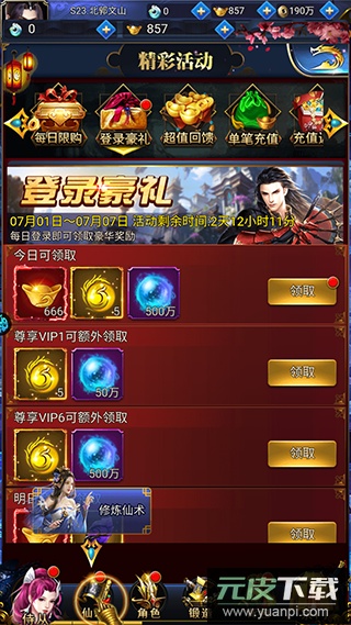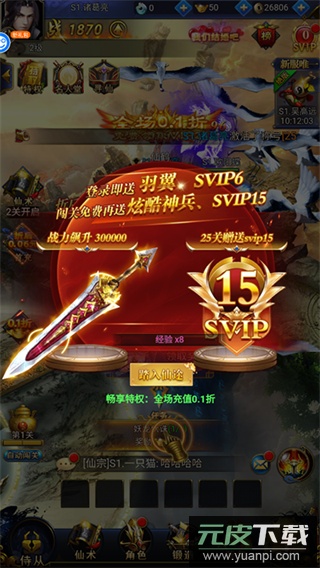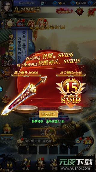 1、登录游戏即赠SVIP15特权与炫酷神兵利器;