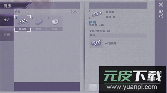 7、利用蘑菇可制作蘑菇串,每两份蘑菇合成一串,这是前期重要的补给来源。