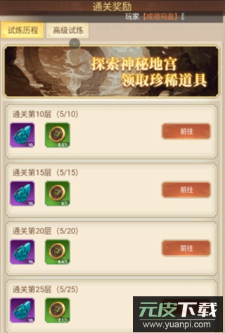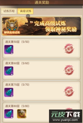 高级试炼:当玩家通过地宫第50层后,即可参与高级试炼并领取神秘奖励。