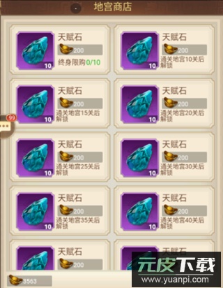 地宫商城:如需更多天赋石,玩家可在地宫商城中消耗元宝进行购买。