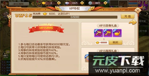 5、满级VIP福利开放,仅需一元宝即可解锁专属礼包;