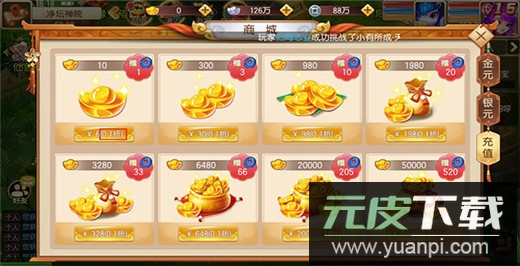 免费获得高级VIP身份,商城礼包均可用一元宝购买;