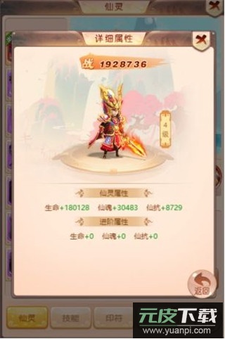4、已激活的仙灵可进行进阶以提升属性,进阶需消耗同名仙灵印符,印符可通过启灵获得;启灵能够提升生命、仙魂、仙抗等属性,同时获取印符与仙灵经验,用于技能升级与属性强化;