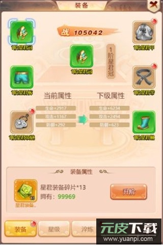 5、激活星君后,可使用星君装备碎片合成装备,并通过淬炼提升装备属性;装备碎片可通过降妖任务获得;