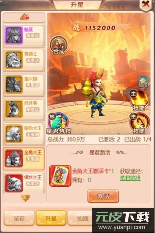 4、已激活的星君可通过使用同名激活卡提升资质与属性,也可通过觉悟仙果进行觉悟操作,增加觉悟属性;