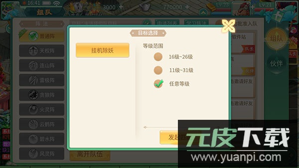 3、组建队伍后,通过设置等级范围来筛选和招募合适队友;