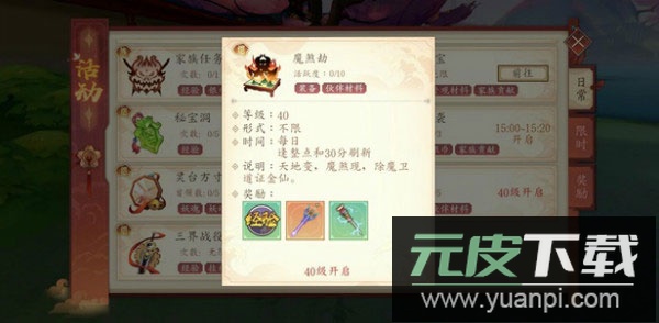在整点与半点时刻,前往大荒各地击退来袭的魔煞,赢取王朝赏赐,包括顶级神器装备。