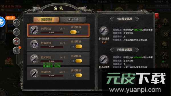 4、技能页面列出了角色已掌握的所有技能及其具体说明;