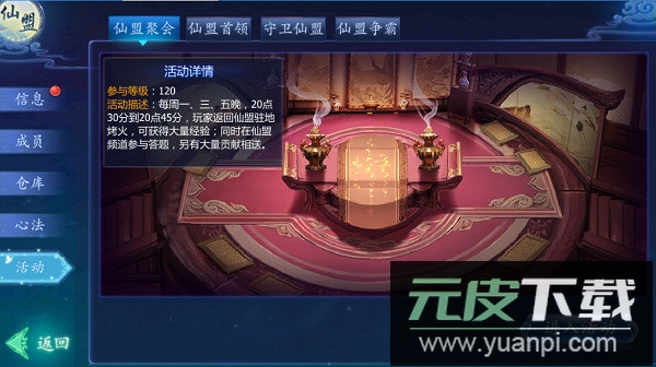 游戏完整重现小说中的浩瀚修仙世界,并设计了解封上古法宝、策略养成等深度内容。以下为仙盟玩法介绍: