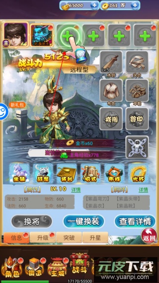 2、升级过程奖励丰厚,包含招募券、元宝等多种资源,最高可获暗金专属装备;