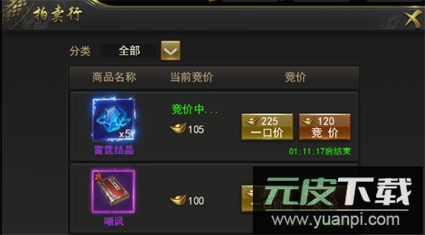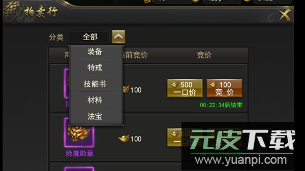 拍卖行物品丰富,包括技能书、雷霆材料、法宝与高级装备等,均可通过击败BOSS获得。