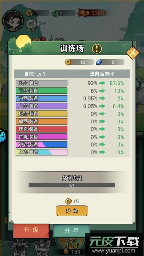 4、在训练场内直接进阶装备,将普通装备淬炼为仙器,是战力飞跃的核心途径。