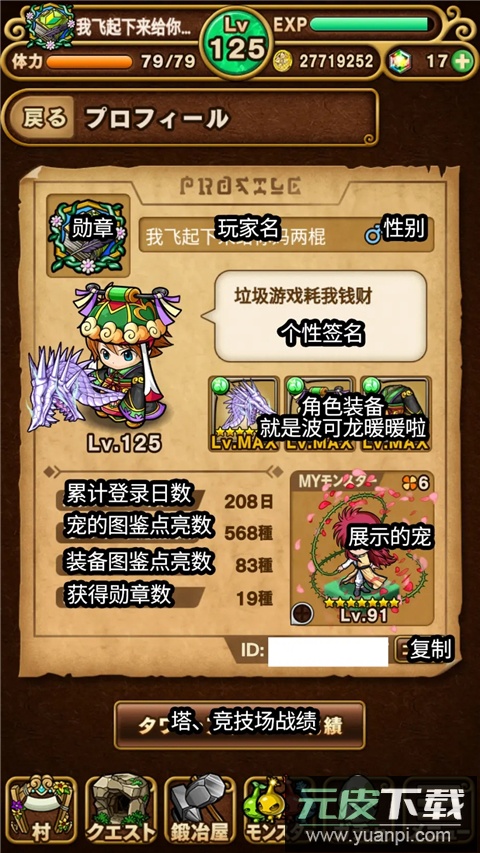 勇者可装备武器、帽子与铠甲;通过副本素材锻造获得;武器类型改变攻击模式,例如弓可实现远程打击。