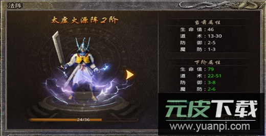 1、法阵共分16阶,消耗阵法之灵可进行升阶,每阶均带来属性增长;