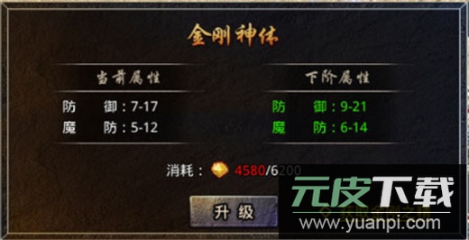 1、金刚神体最高可升至25阶,消耗金刚之精进行提升,每阶均获得属性强化;