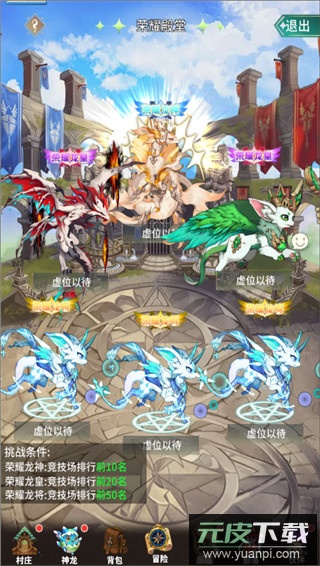 竞技场排名进入指定范围后可参与荣誉称号评选,对应排名条件分别为前十名、前二十名与前五十名;
