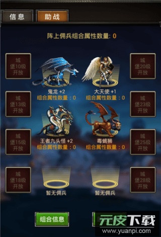 城堡达到10级后,助阵系统随之开启。通过安排佣兵助战,可以激活已出战佣兵的缘分效果,从而提升整体战斗力;