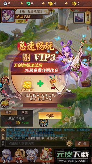 1、创建角色即刻获得VIP3等级及大量礼包与专属权益;