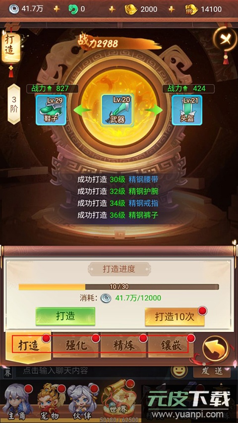 6、对已穿戴的装备进行锻造,通过强化与升阶来大幅提升角色战斗力;