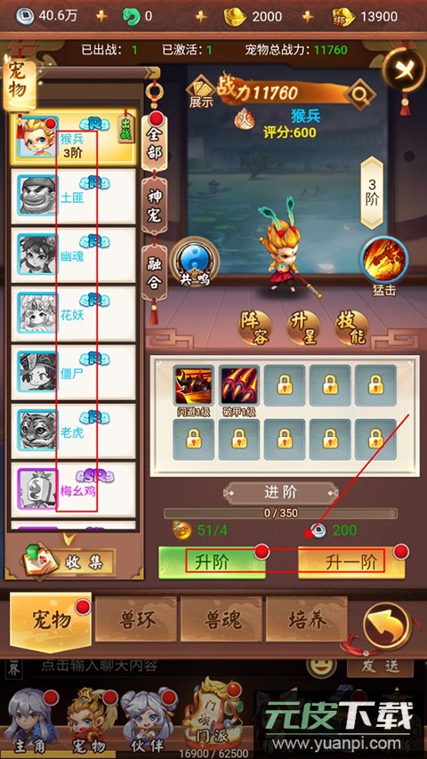 3、捕捉并激活各类灵动可爱的宠物,之后可对它们进行培养与突破;