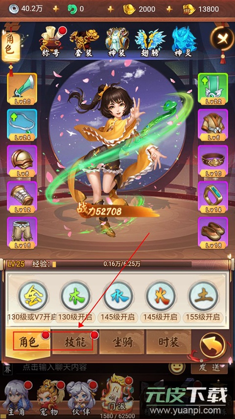 2、为主角穿戴并强化装备以提升实力,同时解锁与升级各项技能;