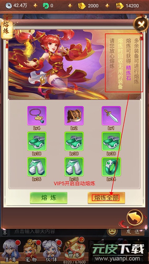 7、背包中多余的装备可进行一键熔炼,转化为珍贵的精炼材料。