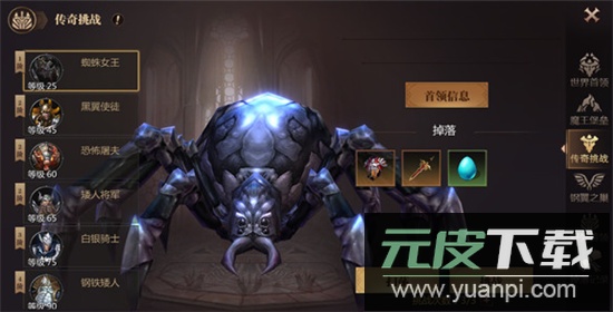 最低等级的传奇怪物为25级的蜘蛛女王,之后依次是45级的黑翼使徒、60级的恐怖屠夫、65级的矮人将军、75级的白银骑士以及90级的钢铁矮人。