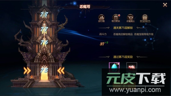 1、此副本为核心玩法之一,采用单人爬塔模式;每通过一层即可领取对应奖励,主要包括O型蛋与恶魔币,层数越高奖励的蛋星级与货币数量越多;每日完成挑战还可获得10点活跃度。
