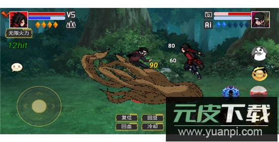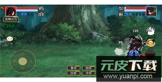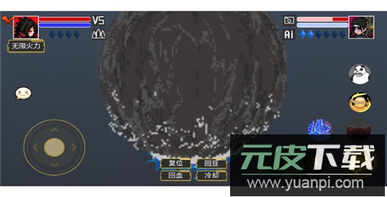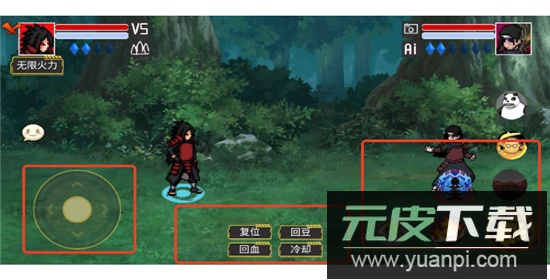 操作布局较为直观,左侧为方向摇杆,右侧是技能按键,界面下方设有复位等辅助功能;