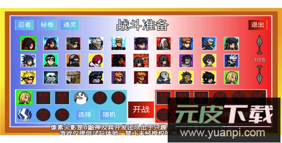 确定难度后,进入角色选择界面,挑选你的出战忍者;