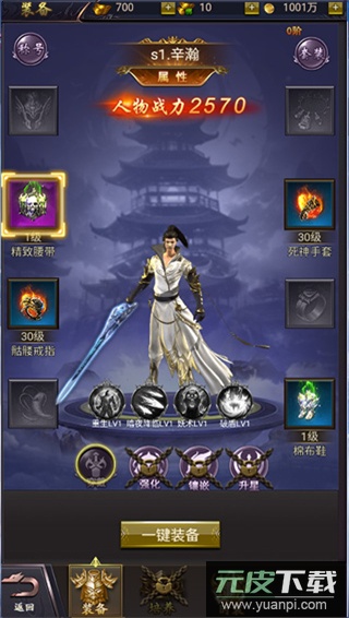 4、获得装备后,可在角色面板进行穿戴,并能对装备进行锻造与强化升级。