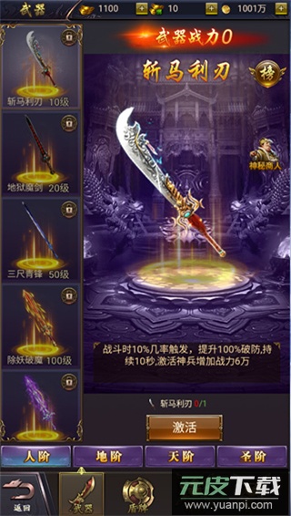 6、除了常规装备,游戏中还设计了许多威力强大的稀有神兵,等待玩家收集与激活。