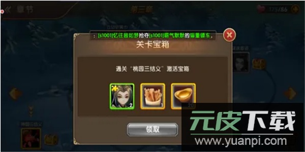 2、获取武将的首个途径是推进主线关卡,通关宝箱中会掉落对应的武将碎片;