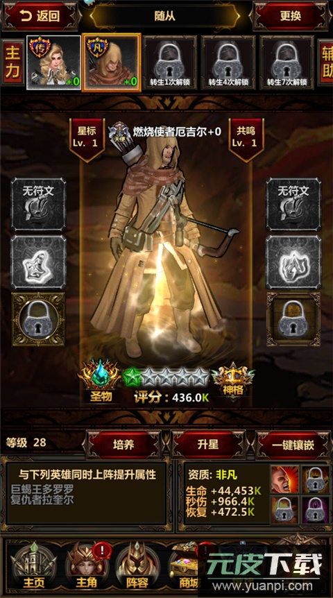 4、在阵容界面中可安排随从上阵,随从能够搭配符文并进行等级提升。