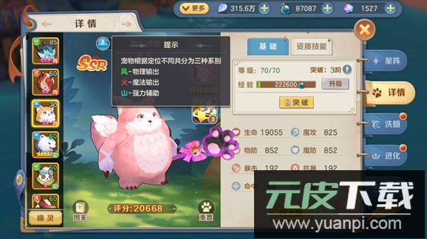 2、使用圣歌风铃道具可召唤宠物,宠物星级代表其品质层次。除了召唤,提升星级也是培养的重点。
