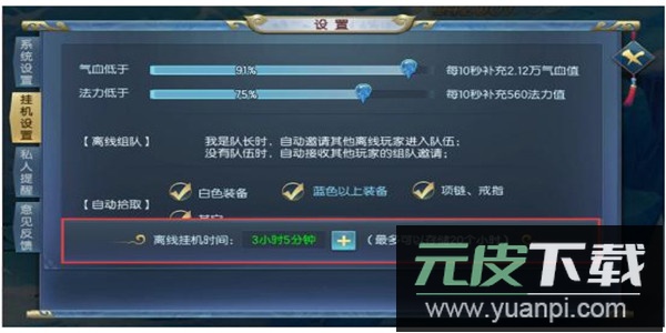 角色达到70级后,可在下线前进行挂机设置。可选项包括自动使用与补充药品、开启物品拾取、自动出售或分解装备,以及自动组队,挂机地点也可自由选择。