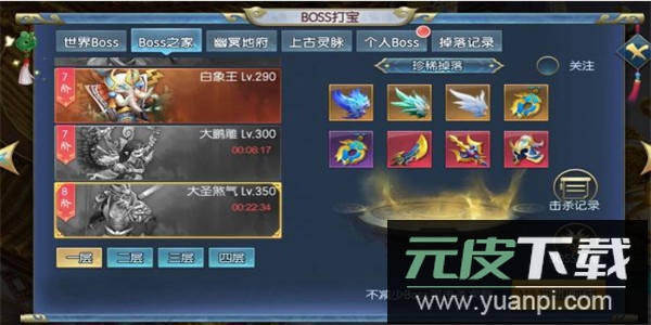在首领界面中,玩家可查看各首领的属性、掉落列表与刷新状态。