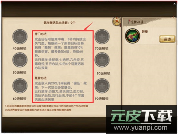 也可通过武学界面的八卦图查看已运功武学的心法特效及其激活要求。