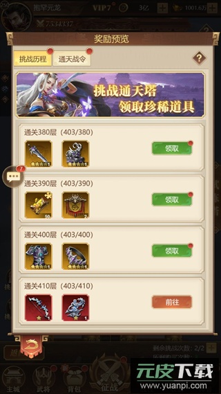 特殊解锁:成功突破第400层后,将解锁试练塔全新挑战内容。