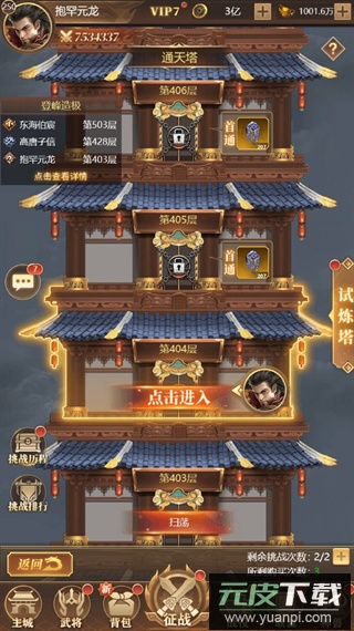 挑战规则:每成功击败一层守将,即可解锁下一层并开启已通关层数的扫荡权限。
